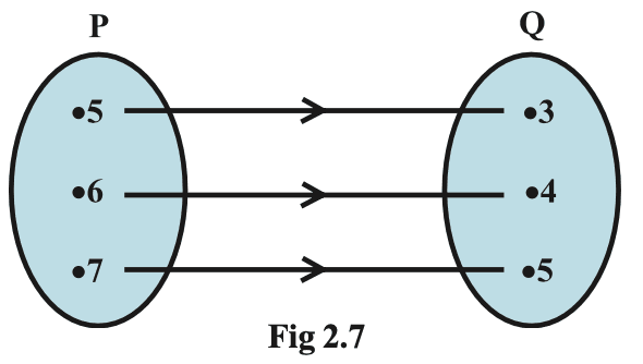 Question 4. The Fig 2.7 shows a relationship between the sets P and Q. Write this relation (i) in set-builder form (ii) roster form. What is its domain and range?