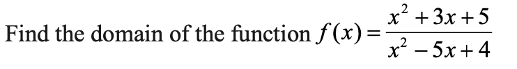 Answer 21 Since x2 – 5x + 4 = (x – 4) (x –1), the function f is defined for all real numbers except at x = 4 and x = 1.