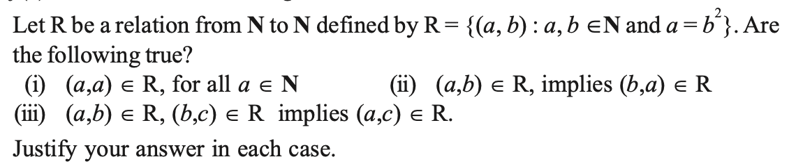 (iii) (a, b) ∈ R and (b, c) ∈ R ⇒ (a, c) ∈ R
